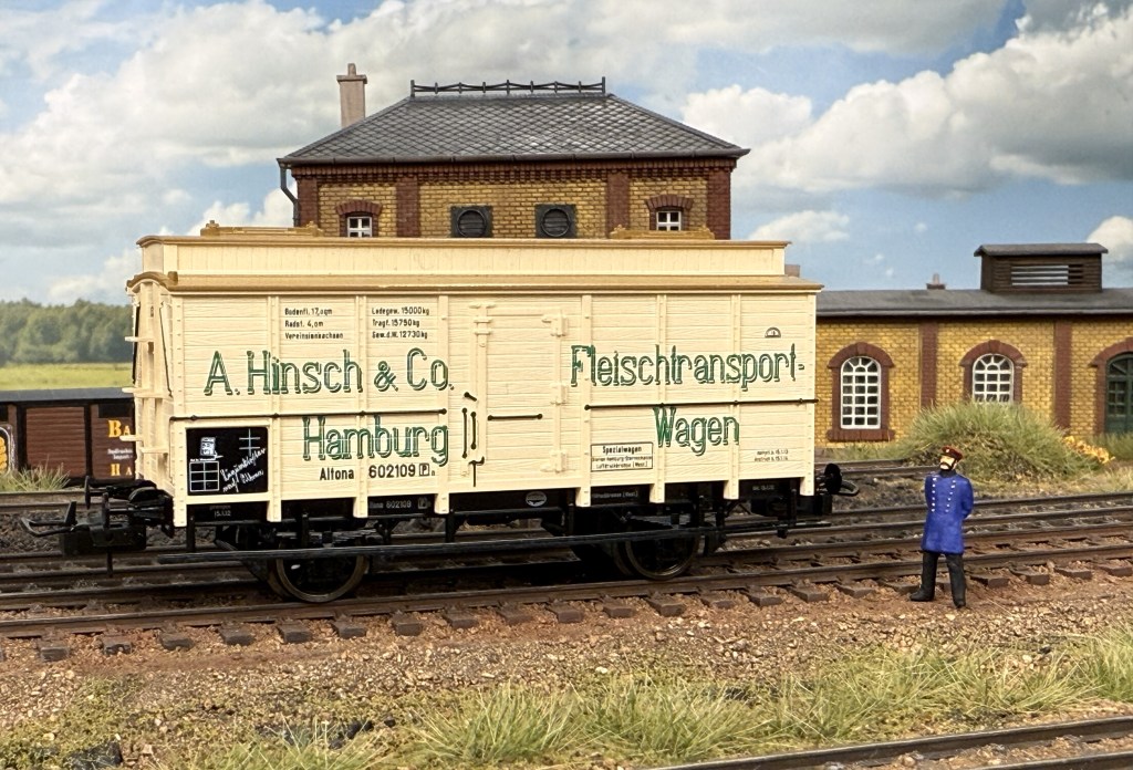 Another white cooling car in the Trix set, the Altona 602109, is designated to transport meat and belongs to the company A. Hinsch & Co in Hamburg.