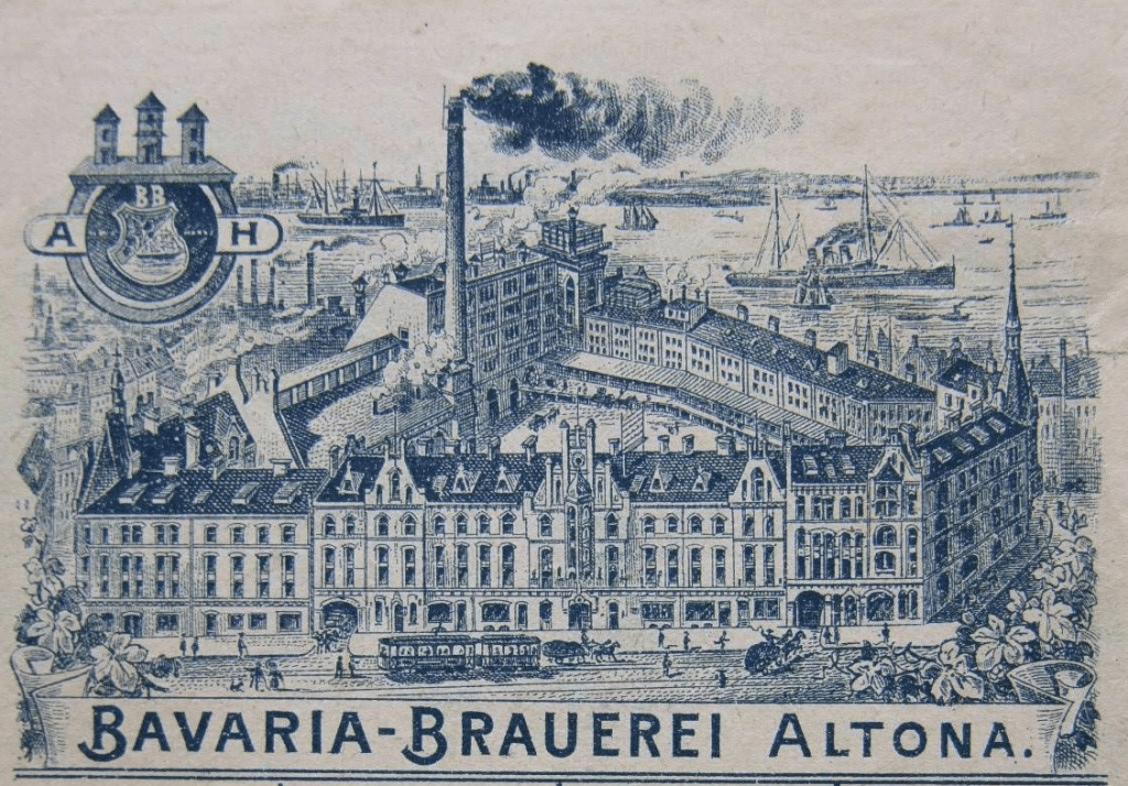 The wonderful old drawing, that I found on the Facebook-page of a community interested in the old brewery, shows the beautiful buildings of the brewery. Note the smoking chimnet, the ships in background and the tram in the foreground – seemingly a busy and succesful place.